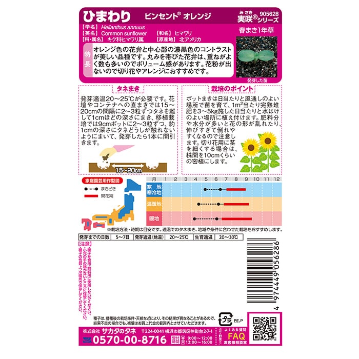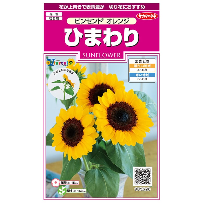 「ビンセント」シリーズは無花粉なので切り花やアレンジにおすすめ。発芽がよく、生育がそろい、上向きに花が咲くのが特徴です。日の長さに左右されないので地域を問わず栽培できます。