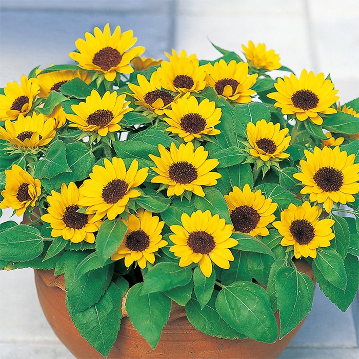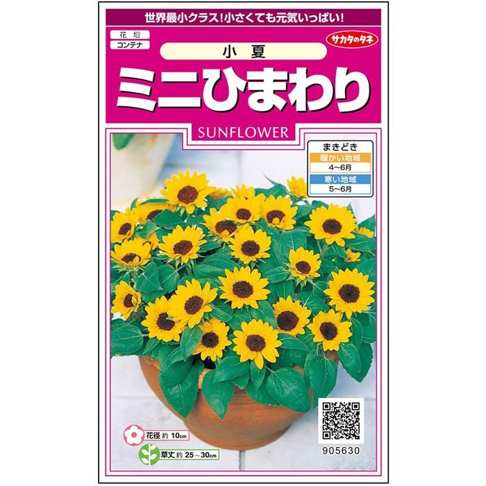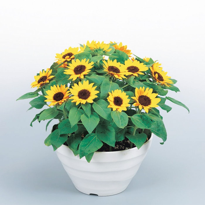 世界最小クラスのミニヒマワリ。次々に花が咲くので長い期間観賞できます。サカタのタネが長年かけて開発した自慢の品種です。