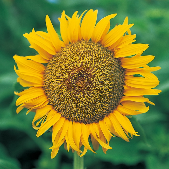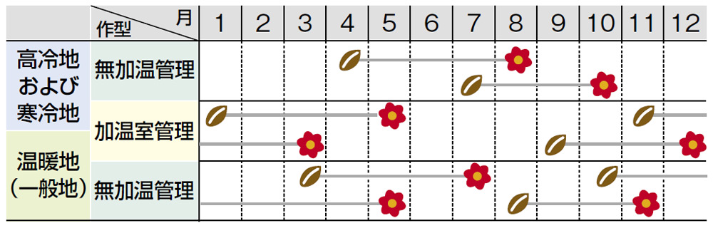 オレンジがかった黄色の花弁に緑黄色の大きな中心部が印象的。根張りが強く花壇や大きな鉢植えに向きます。
