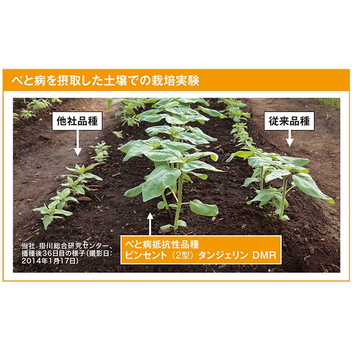 ※抵抗性とは、発病条件(温度、湿度、病原体の密度など)の影響を受けにくい安定したもの。それに比べ影響を受けやすいものを「耐病性」と当社では区別。ただし、「抵抗性」としているものでも、発病条件やレ-ス分化などにより発病することがあります。