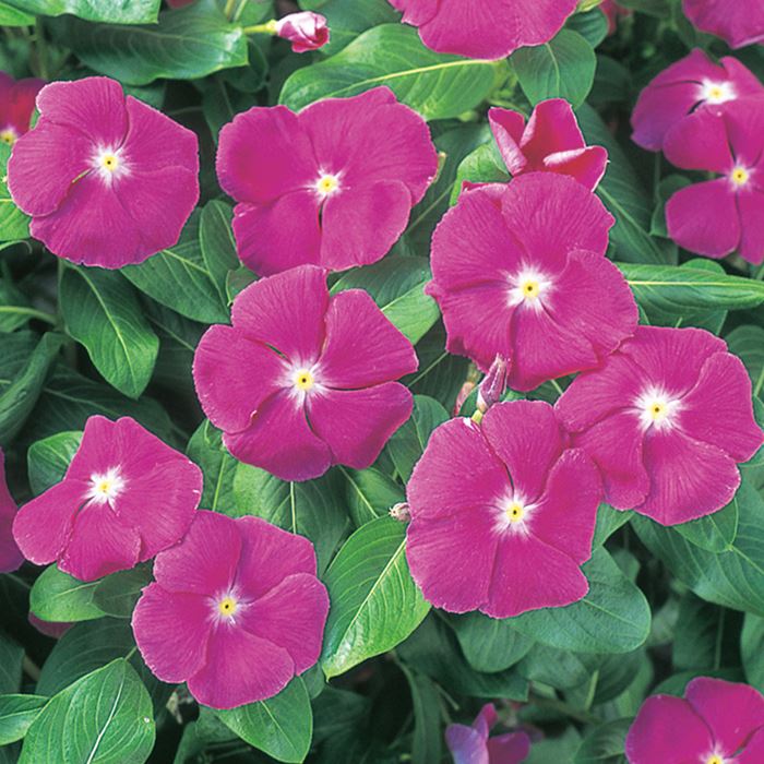 紫色を帯びた桃色に白目の花色が魅力です。多花性の極わい性品質で、鮮やかな花色が特徴です。花径約4cmの丸弁で、基部の分枝、側枝の開花が早いです。シリーズのそろいがよく、同時出荷が可能です。