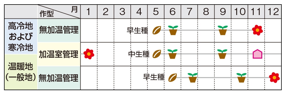 アコーリスタイプ。低温要求度が少ない極早生品種で、生育が早いです。