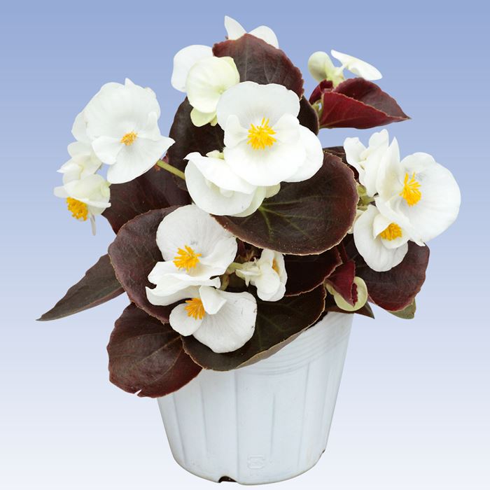 一代交配品種。四季咲きで開花が早く、花つきがよいです。銅葉品種で、「アンバサダー」シリーズとの対になります。