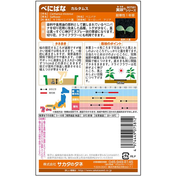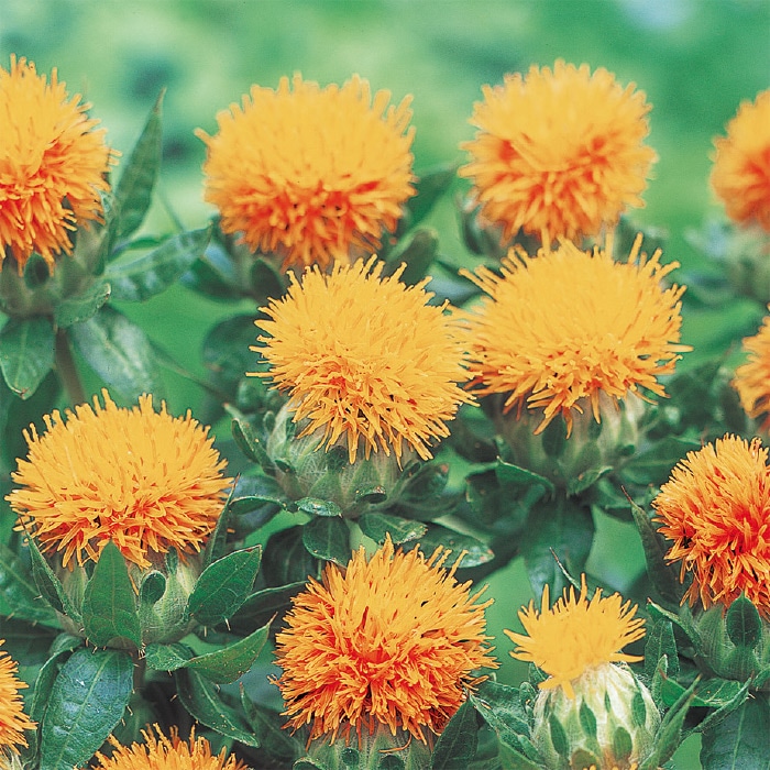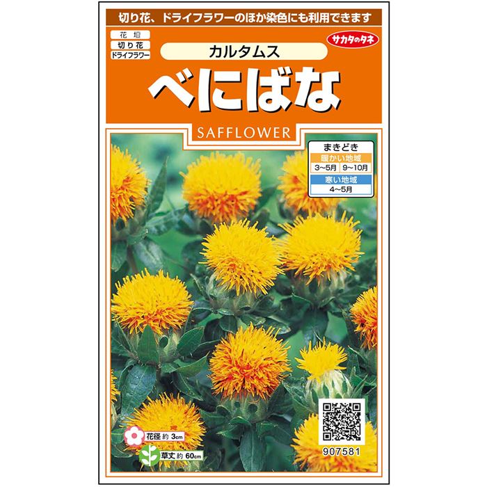 ベニバナを切り花用に改良した品種。とげが少なく、茎は真っすぐに伸びてスプレー状の草姿になります。