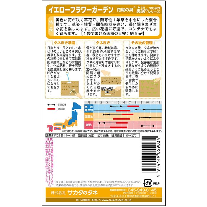 花壇や鉢に直接タネをまいて楽しむことができる、育苗の手間がかからない草花。花色ごとに多彩な品種をミックスした絵袋です。
