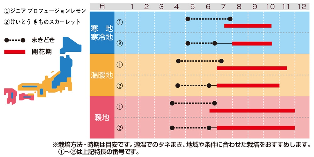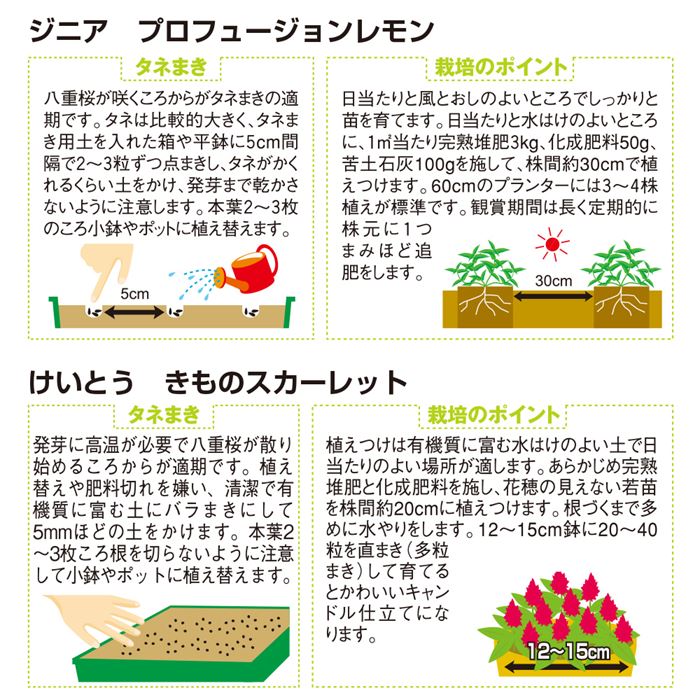 夏の暑さに強い品種をセレクトしました。1袋で夏花壇の人気品種を2種類育てられます。