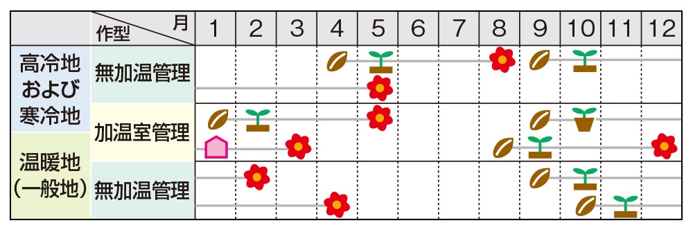 早生の八重咲き品種。寒さに強く丈夫で、栽培が容易です。簡易ハウス栽培、西南暖地では、露地栽培による切り花出荷が可能です。紫青、桃色の混合。