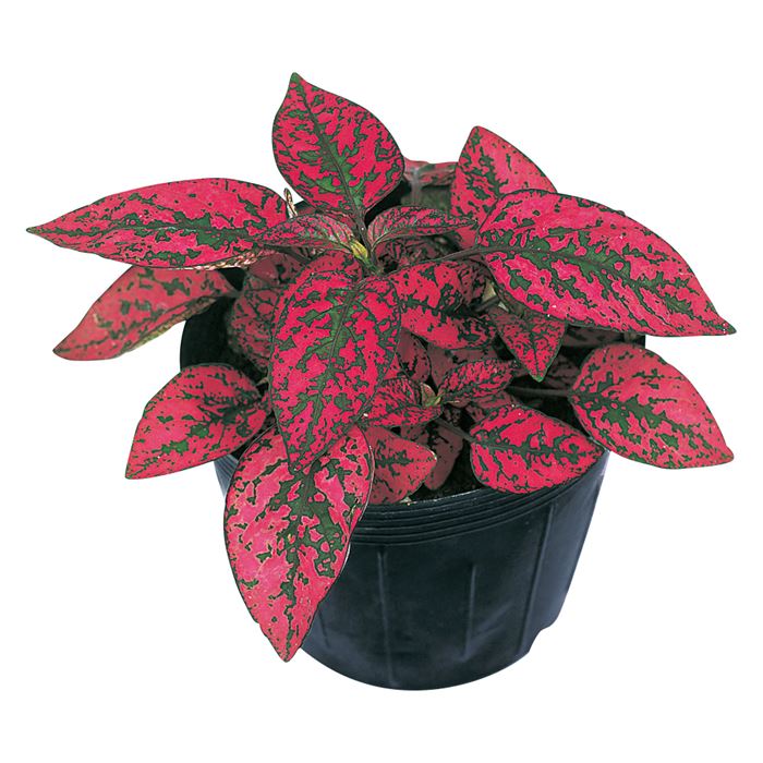 ユニークなカラーリーフが特長で、寄せ植えなどに使いやすい、わい性ヒポエステスです。そろいがよく、コンパクトでよく分枝します。耐暑性にすぐれ、花壇、コンテナガーデン用のポット出荷に適します。赤色に緑。
