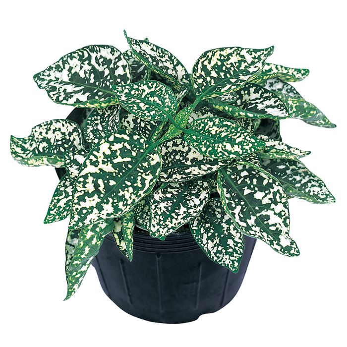 ユニークなカラーリーフが特長で、寄せ植えなどに使いやすい、わい性ヒポエステスです。そろいがよく、コンパクトでよく分枝します。耐暑性にすぐれ、花壇、コンテナガーデン用のポット出荷に適します。白色に緑。