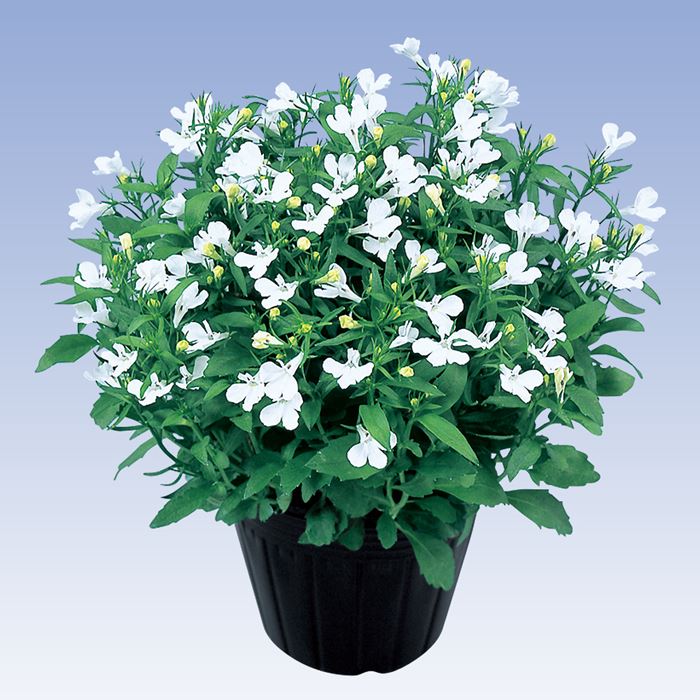 わい性早生品種で枝が伸びず株の乱れがないため、株間が狭くても管理可能で、花つきよく栽培が容易です。小鉢栽培にも適します。白色。