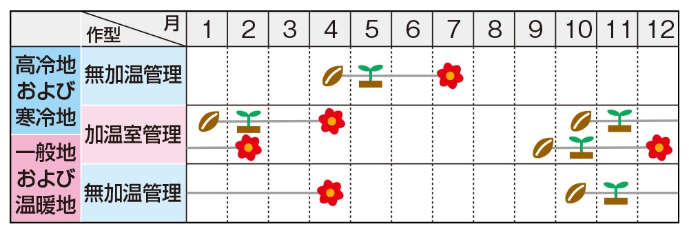 ※高温長日条件では、葉枚数と花数が減少し、草丈が短くなる傾向がありますのでご注意ください。