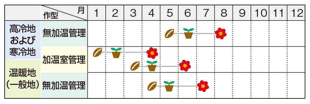 ※早まきによる温度不足では奇形花となることがありますのでご注意ください。