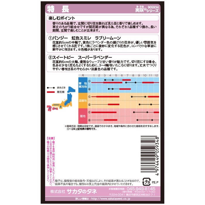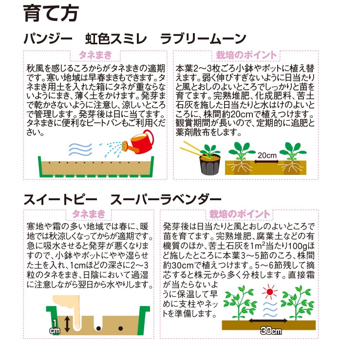 「パンジー 虹色スミレ ラブリームーン」と「スイートピー スーパーラベンダー」が入ったセット