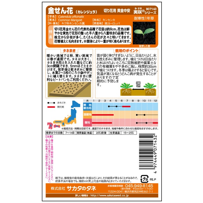 カレンジュラ(金せん花) 切り花用 黄金中安