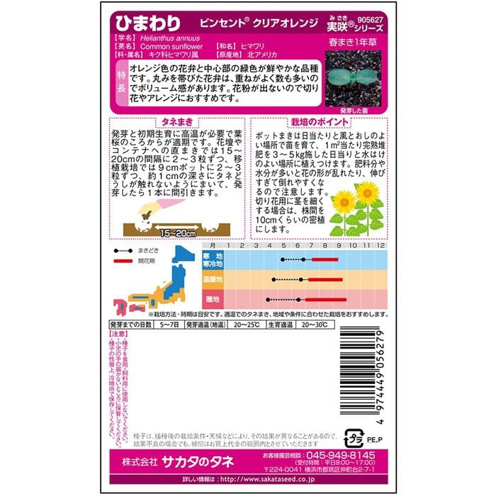 - アスター あずみXL ホワイト(約100粒)、カンパニュラ メイ ピンク(約65粒)、久留米けいとう アーリーローズ(約145粒)、キンギョソウ ファルファレ ミックス(約90粒)、ヒマワリ ビンセント(R) (2型) クリアオレンジ(フィルムコート種子約15粒)、デルフィニウム パシフィックジャイアント(約30粒)