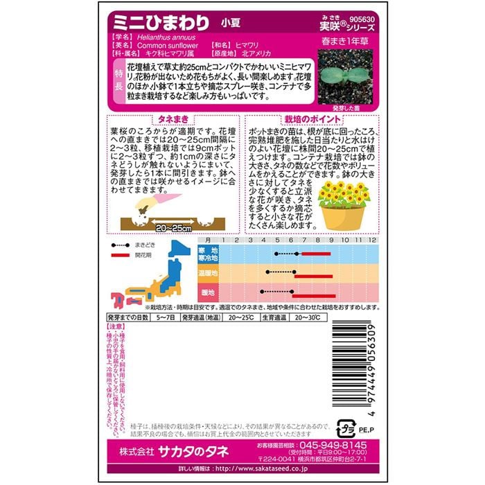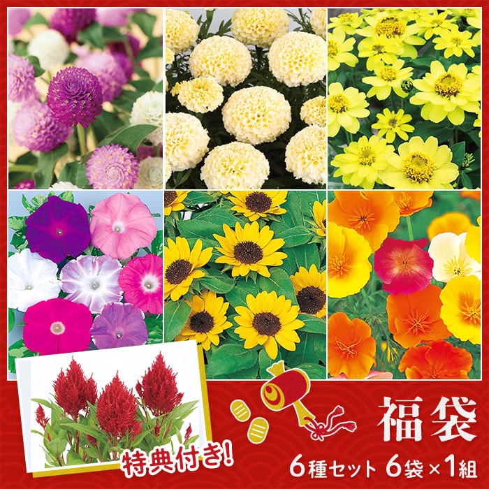 - ジニア(百日草) プロフュージョン レモン(約10粒)、マリーゴールド ホワイトゴールドマックス(クリーンシード約30粒)、センニチコウ ネオン ミックス(クリーンシード約60粒)、花菱草 一重咲き混合(約135粒)、ヒマワリ 小夏(フィルムコート種子約20粒)、アサガオ 暁の混合(約10粒)
