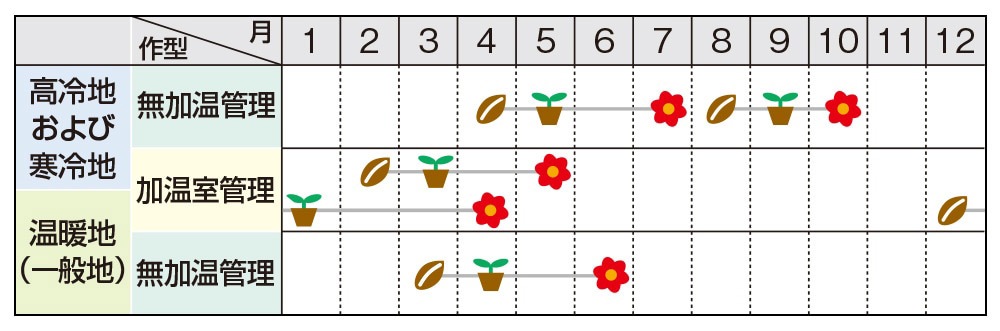 ※栽培時期、環境により、同一の品種でも生育に差が生じ、ふぞろいになる場合があります。