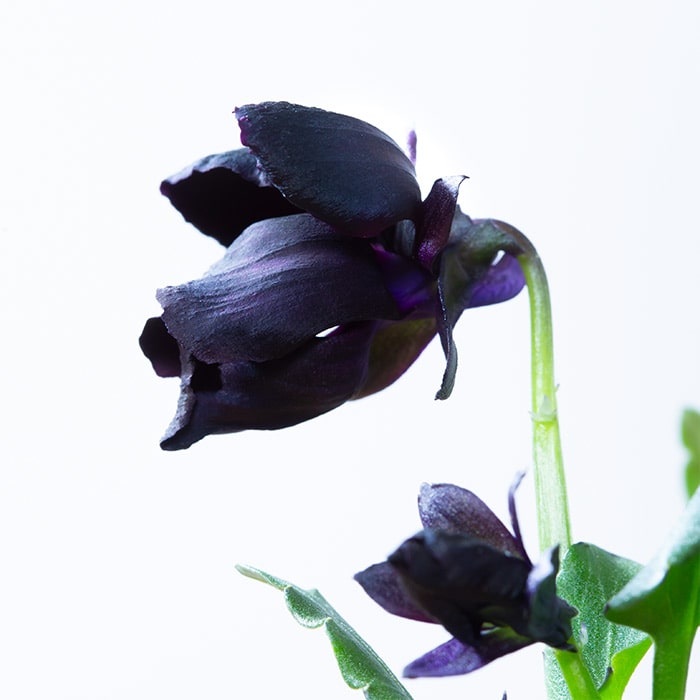 花弁が完全に開ききらないユニークな花形とツヤのある黒の花色が上品な印象を与える「ブラックエミュー」。花首の長さとうつむき加減の咲き方から、冬のガーデンの女王と呼ばれるクリスマスローズを思い起こさせます。手に取ってじっくり眺めたくなるパンジーです。