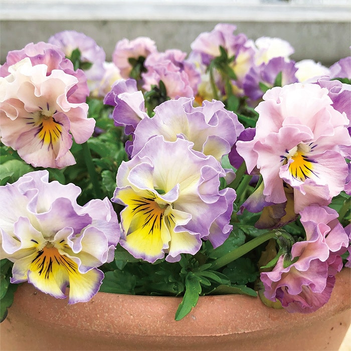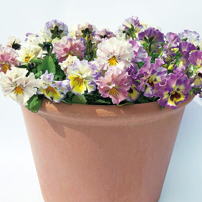 鮮やかな縁取りがかわいいセミフリンジビオラです。透明感のある明るい色合いで、庭や玄関先に飾れば人目を引くこと間違いなし!