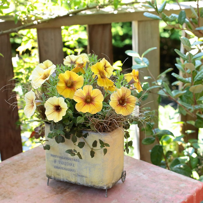 存在感のある中大輪ですが、絶妙な色合いで他の花とも合わせやすく、どんどん咲くのでいつもきれいな寄せ植えに 撮影協力:グリーンギャラリーガーデンズ