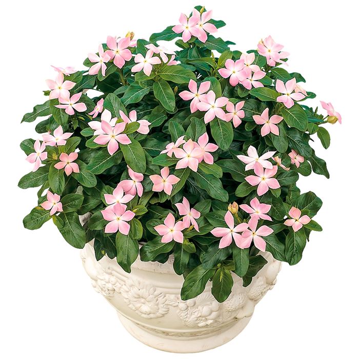 柔らかいピンクの星形の花が印象的。暑さに強く、丈夫で花付きがよいので次々と花が咲き、まるで地上の星空を見ているよう。