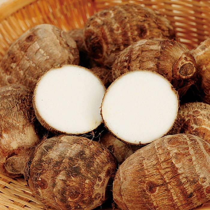 生育が早く、中身は鮮明な白色です。ぬめりやねばりは程よく、蒸し里芋は絶品です。