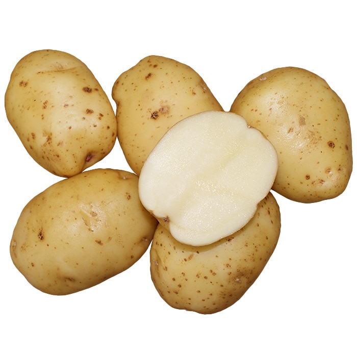 イモの肥大が非常に早く、白っぽいジャガイモから名付けられました。収穫時期は男爵薯と同じくらいです。食感は滑らかでクセが少なく食べやすいです。