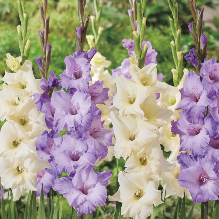 淡い黄色と紫の組み合わせ。花壇に植えると涼しげな印象です。