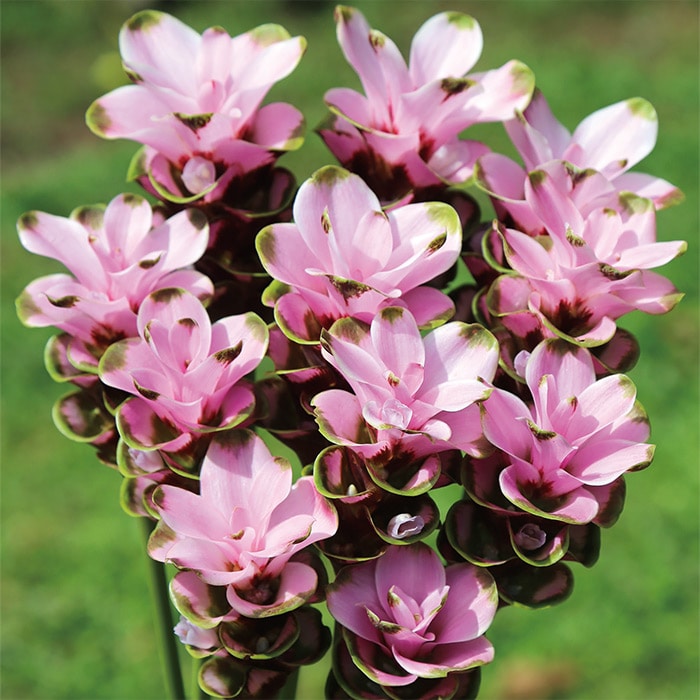 やや晩生で葉が十分に茂ってから数本の花茎から上がります。