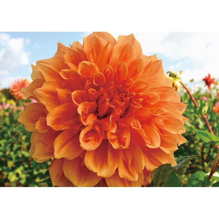 落ち着いた淡橙色の超巨大輪。太く強健な花茎を持ち、巨大花をしっかり支えます。