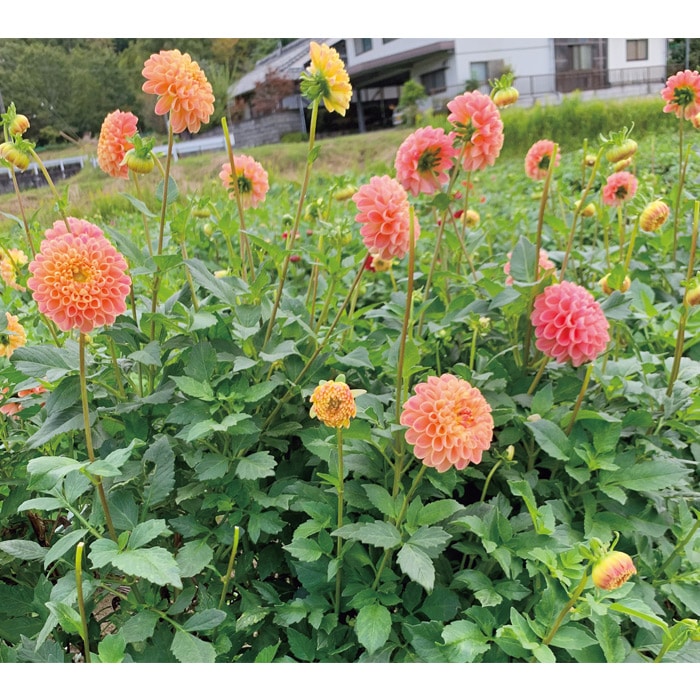 クリームからサーモンピンクの温かみのある色合いの花がたくさん咲き、うっとりするような美しさ。