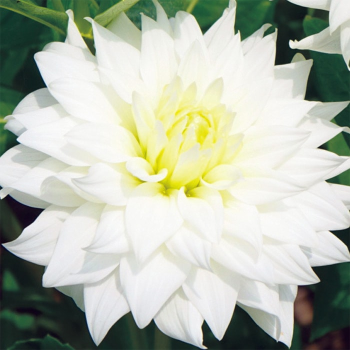 ボリュームのある純白の花弁の中心に薄黄緑色が見え、すがすがしい印象です。切り花にしても映えるクールビューティー。