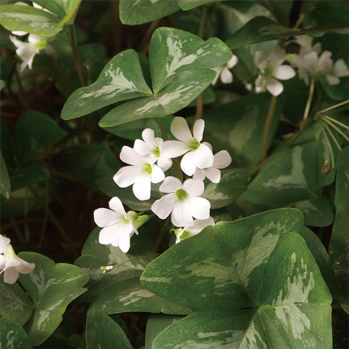 三角形の葉がかわいい葉を楽しむオキザリス。日陰でもよく育ちます。