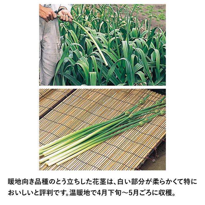 山口県萩市沖合の離島で生産されてきた品種です。一般種に比べ、りん片が多く外皮が赤いのが特徴で、ニンニク特有の香りが強く、濃厚な味わいと風味が抜群です。