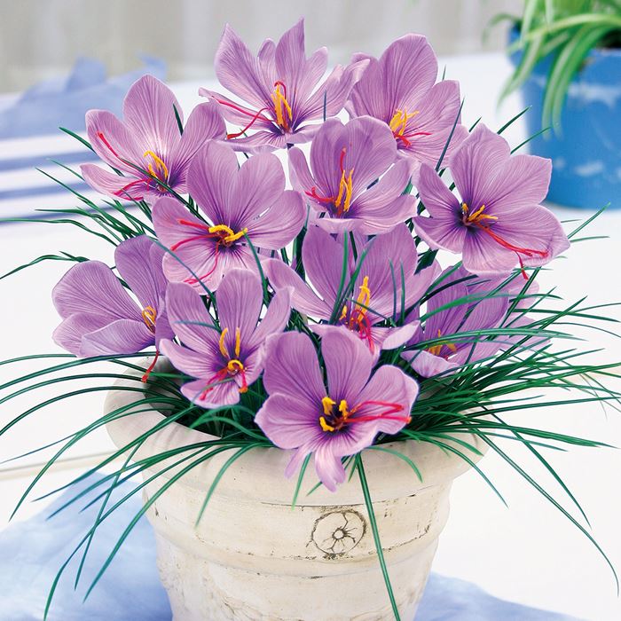 香りのよい紫の花を咲かせます。 サフランの球根は、水耕栽培も可能。また水や土がなくても開花します。