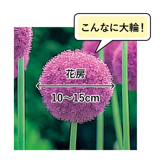 巨大なネギ坊主のような花はインパクト満点。開花期間が長く、切り花にもおすすめです。