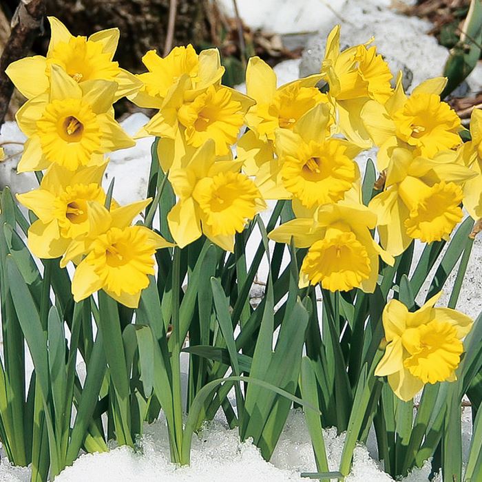 ラッパ咲きのスイセンの中では珍しく、2月から開花する品種。冬から早春の2カ月もの間咲き続けます。