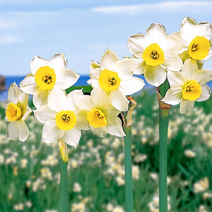 日本で古くから親しまれてきた、冬から早春に開花する房咲きのスイセン。芳しい香りと清楚(せいそ)な花が魅力的です。寒さに負けずに花を咲かせます。