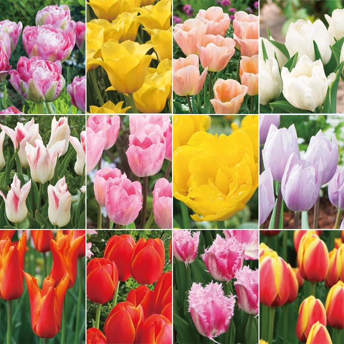 いろいろな花色、花形のチューリップを、50品種、1球ずつお届けします。価格も超お得! 華やかなチューリップの競演をお楽しみください。