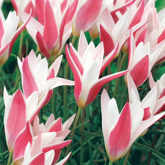 原種チューリップは花の形や色が個性的で、一度植えると毎年花を咲かせてくれます。草丈が低いので小スペースでも栽培を楽しめます。品種見計らいで50球入ったお買い得ミックスです。