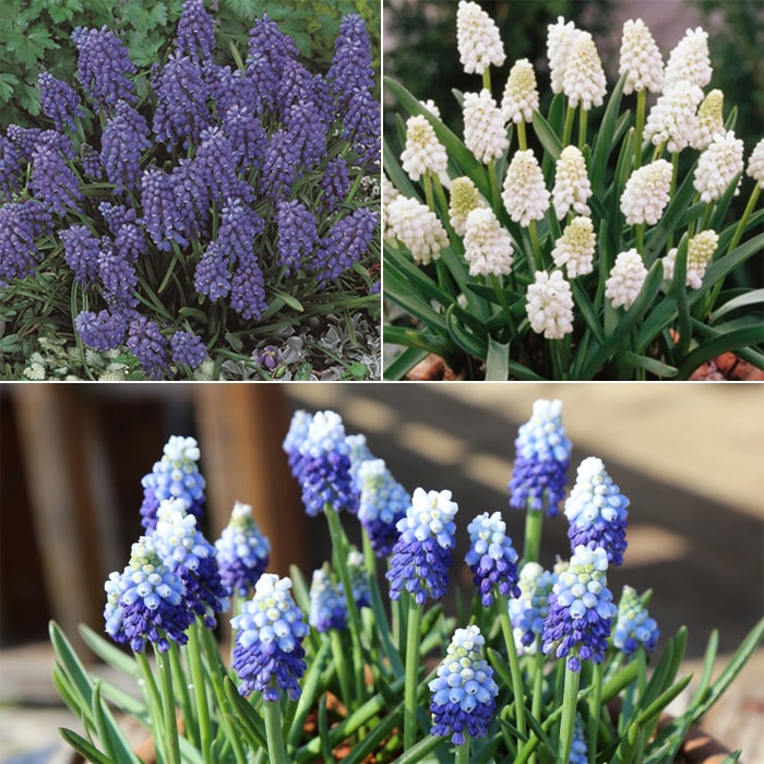 ムスカリを200球1組の詰め合わせを大特価で販売します。青色を中心に品種見計らいでお届けします。