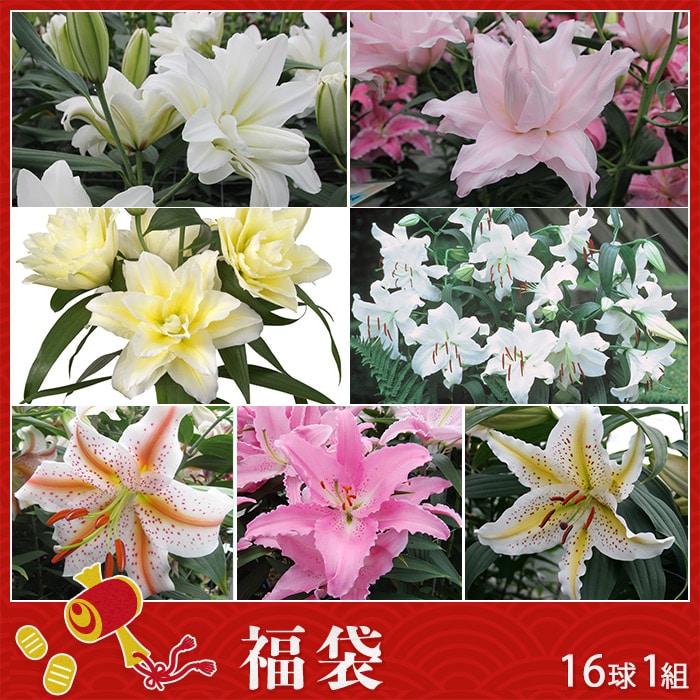 初夏の庭をゴージャスに彩るオリエンタルユリを16球、品種名称付きでお届けします。