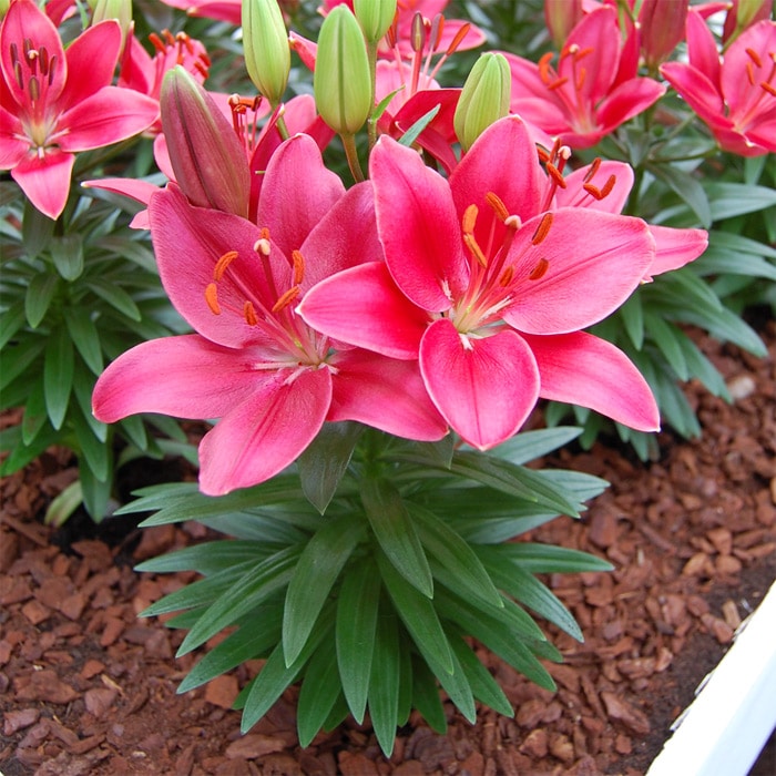 秋に植え付け、開花は初夏。育てるのに7~9カ月間もかかるスカシユリは、栽培期間が長い分、短期間で育つ品種に比べると、環境被害にあうリスクが高くなります。そのリスクを軽減したのがわい性スカシユリの「フェアリーリリー」です。