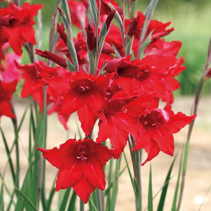 濃くて渋めの上品な赤花品種。細めの草姿に豪華な花が咲きます。