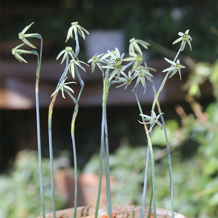 珍しい秋咲きのスイセン。香りの強い小さなグリーンの花が咲きます。小さくきゃしゃな草姿ですので、鉢栽培向きですが意外と丈夫で、露地栽培も可能です。