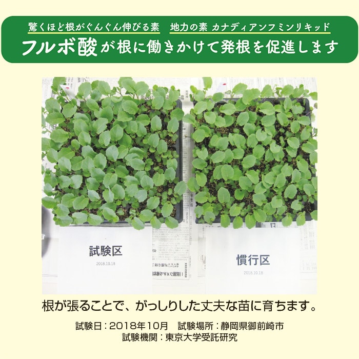 使用量の目安(約):1000倍に希釈し、10~15日に1回土壌に施用する