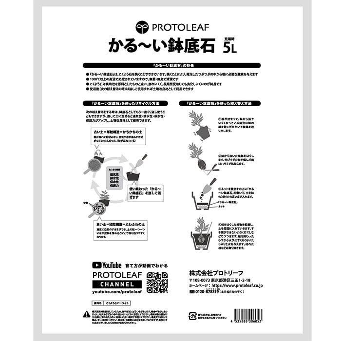 高品質な粗く硬いパーライトを使用しており、鉢内の排水性と通気性をより向上させてくれる軽量な優れものです。土に混ぜて土壌改良材としても使えます。プランターや鉢での栽培に鉢底石は必須です!