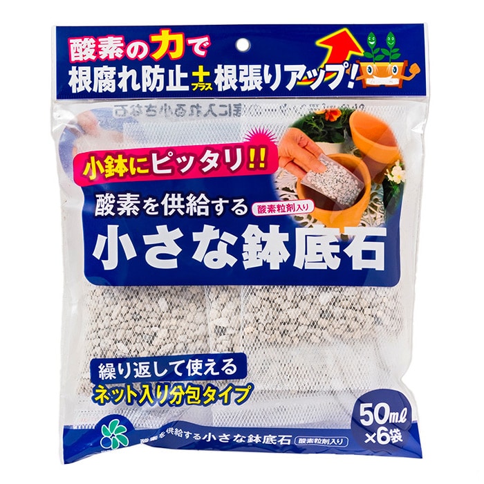 ネットに入っているので繰り返し使えます。酸素粒剤の働きで、より根に酸素を与え根張りをよくします。