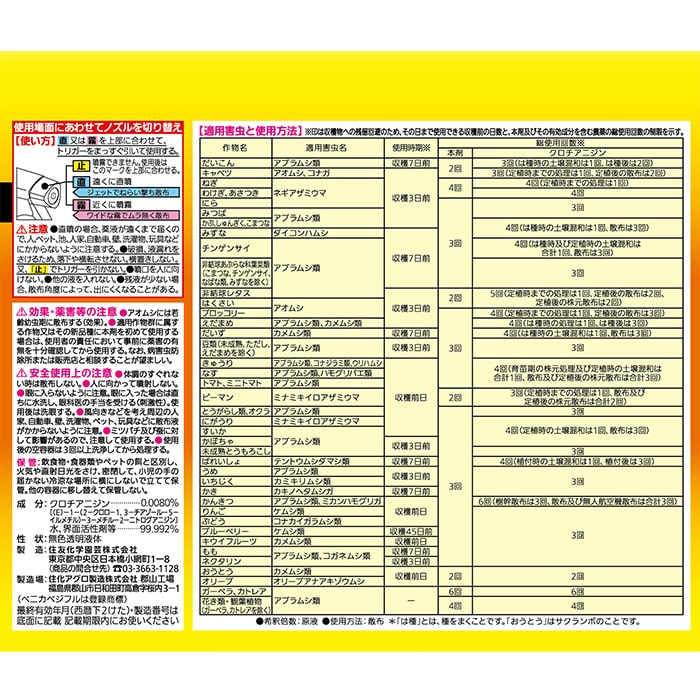 幅広い害虫に優れた効果があり、野菜、草花、果樹などに使えます。
