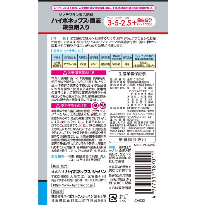 ハイポネックス(R) 原液 殺虫剤入り 450mL×3本